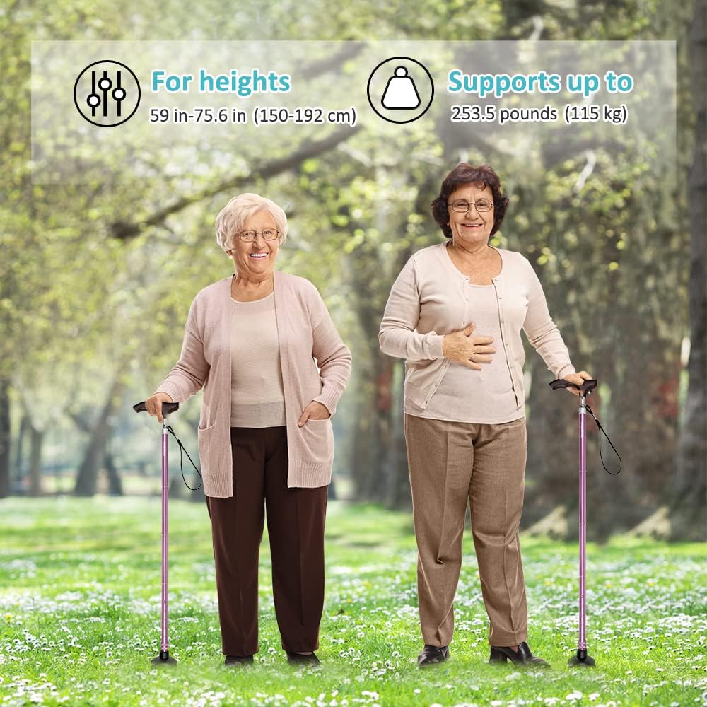 The cane features a slip-resistant quad rubber tip for reliable support on most surfaces. Its freestanding design allows the cane to stay upright, so you don’t have to bend down to pick it up, enhancing safety and mobility at home or on the go.